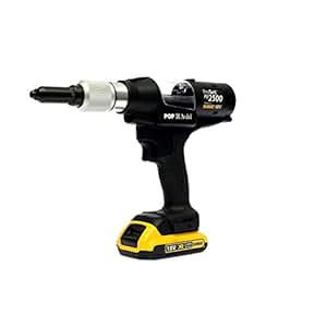 POP PB2500-NA CORDLESS RIVETER 18V 3/32-3/16 W/LiION BATTERY CHARGER CARRY CASE 3 offers from $1,869.15 Milwaukee Electric Tools 2550-20 M12 Rivet Tool (Bare Tool) 430 4 offers from $219.44 Tradespro 836341 Aluminum Rivet Assortment, 500-Piece, Multiple Sizes 3,952 5 offers from $11.52
